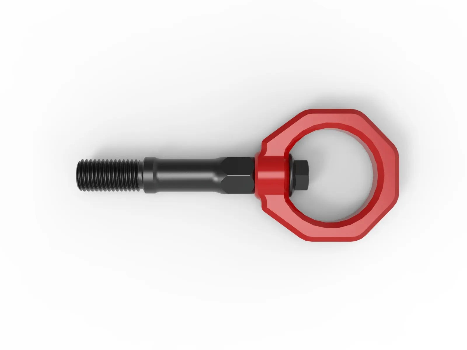 Add aggressive styling and useful functionality to your C8 Corvette with the aFe CONTROL Rear tow hook. Its sleek design not only looks great but is strong enough to safely winch your car onto a tow truck or get towed trackside if the need arises. Our C8 specific CNC machined stem and loop is made of 4130 steel. The stem is black zinc coated for corrosion resistance. The loop is powder coated Red (Blue, Gray, and Black are available). This is not a universal tow hook. The stem was specifically designed for the C8 Corvette and the length was carefully determined to fit the rear bumper. A proper front tow hook to match is also available. (p/n 450-401014-R). Both the stem and bolt threads are pre-coated with Vibra-tite threadlocker. This keeps your tow hook from loosening due to vibration. The special threadlocker is designed to remain flexible, removable, and reusable.