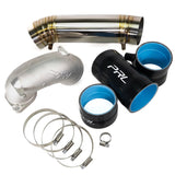 Maximize your FL5's engine intake system and turbocharger potential with the PRL Motorsports Turbocharger Inlet Pipe Kit. This kit is a direct bolt-on upgrade that eliminates intake airflow restriction before the turbocharger, allowing the turbocharger to operate more efficiently. Our design utilizes a cast aluminum inlet piece to allow smooth transition from the gasket-matched 64mm ID compressor inlet to a 80mm OD / 78mm ID outlet throughout the Titanium crossover pipe. This kit is the largest inlet pipe available and offers over a 50% increase in airflow volume in comparison to the factory inlet pipe! Increased bottom-end power and spool.