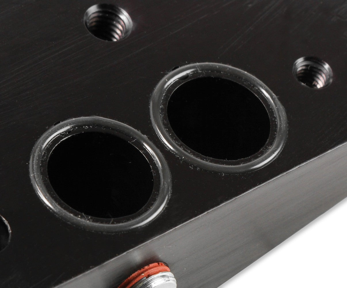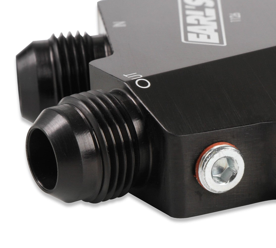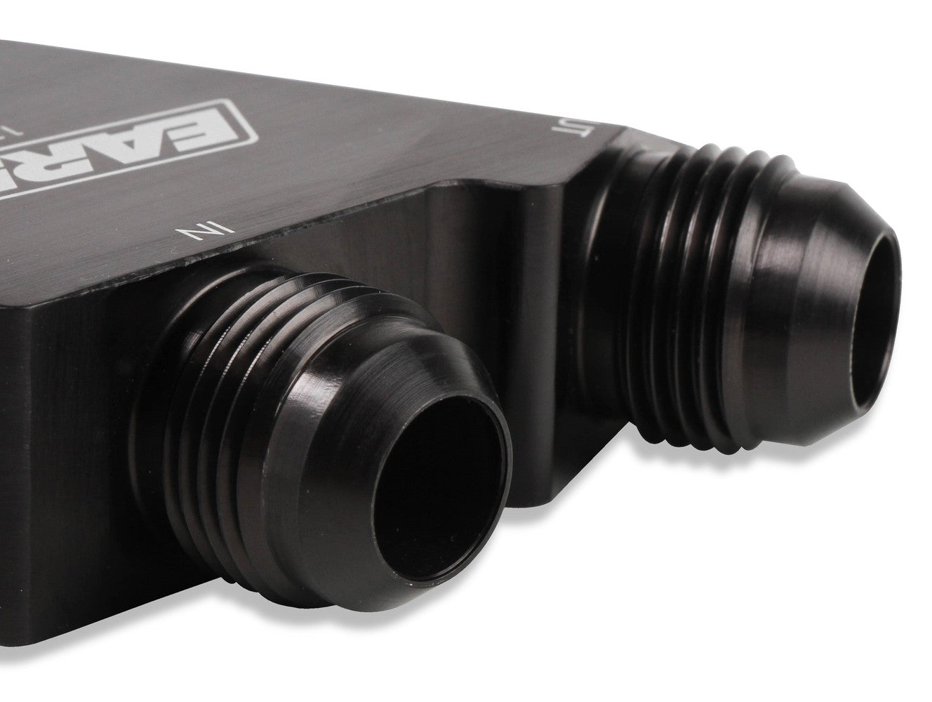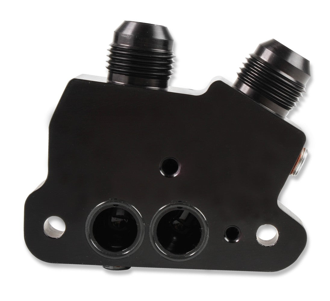 Earl's billet side mount oil cooler adapters are the slick way to add an oil cooler to your GM LS or Gen-V LT engine. The slim design of these adapters clear most headers and other components and feature -10 AN male connections. These adapters are black anodized and use O-Ring seals for a leak free installation.
