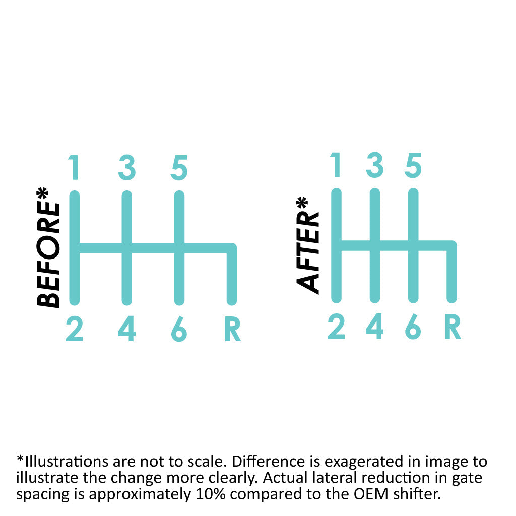 - 2023+ 5th Gen Acura Integra (all trims with MT): 10% reduction in gate spacing